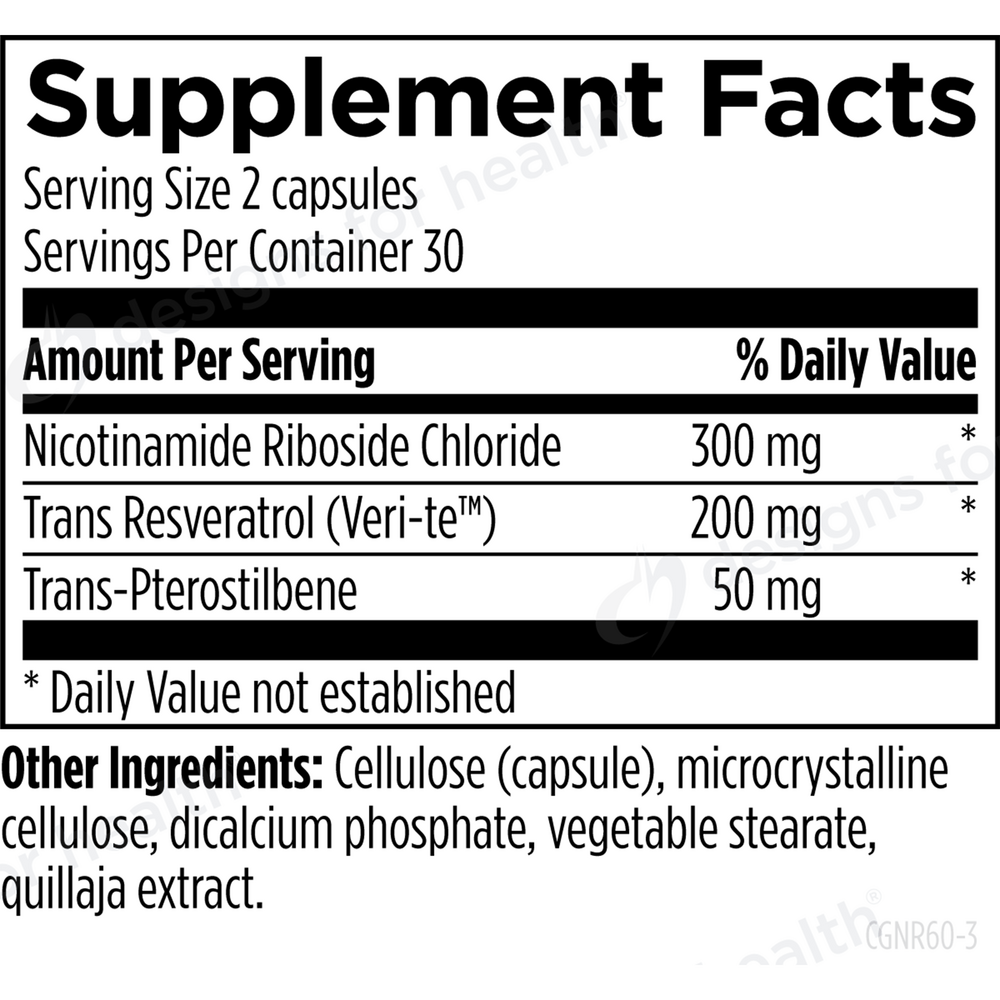 CellGuard-NR™ by Designs for Health is a practitioner-grade cellular health and healthy aging formula designed to support the body’s natural cellular repair processes, antioxidant defenses, and energy metabolism.* It combines clinically relevant amounts of nicotinamide riboside (NR), resveratrol, and pterostilbene—three well-researched compounds that work synergistically to support cellular resilience and longevity pathways.