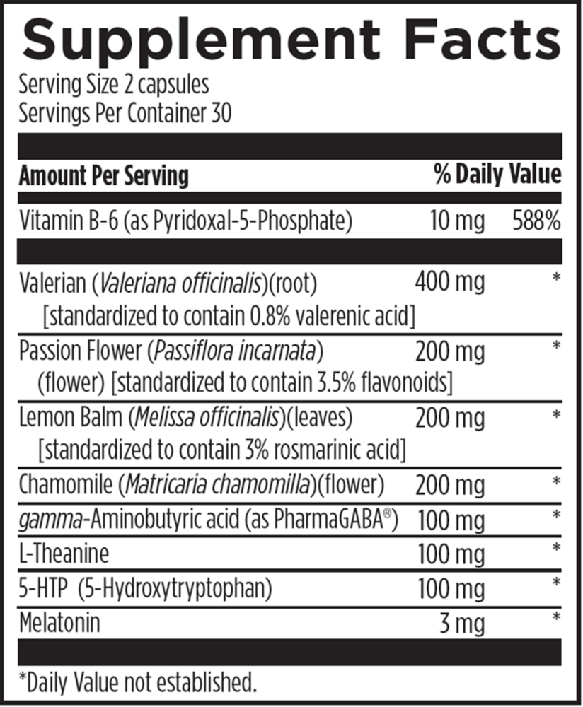 Take two (2) capsules 30–60 minutes before bedtime, or as directed by your healthcare practitioner.